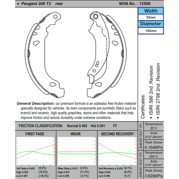 محل قرارگیری: دو جفت , لنت ترمز کاسهای (کفشکی) , مناسب برای چرخ عقب
