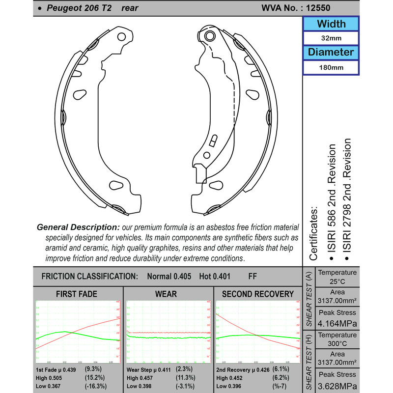 محل قرارگیری: دو جفت , لنت ترمز کاسهای (کفشکی) , مناسب برای چرخ عقب