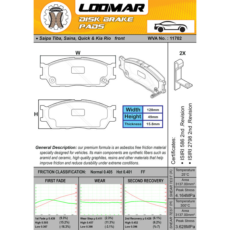 محل قرارگیری: دو جفت , لنت ترمز دیسکی , مناسب برای چرخ جلو