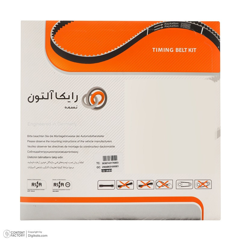 کیت تسمه تایم رایکالتون کد RT1077-134Z مدل 134 دندانه HNBR مناسب برای پژو 206 تیپ 5 و پژو 207
