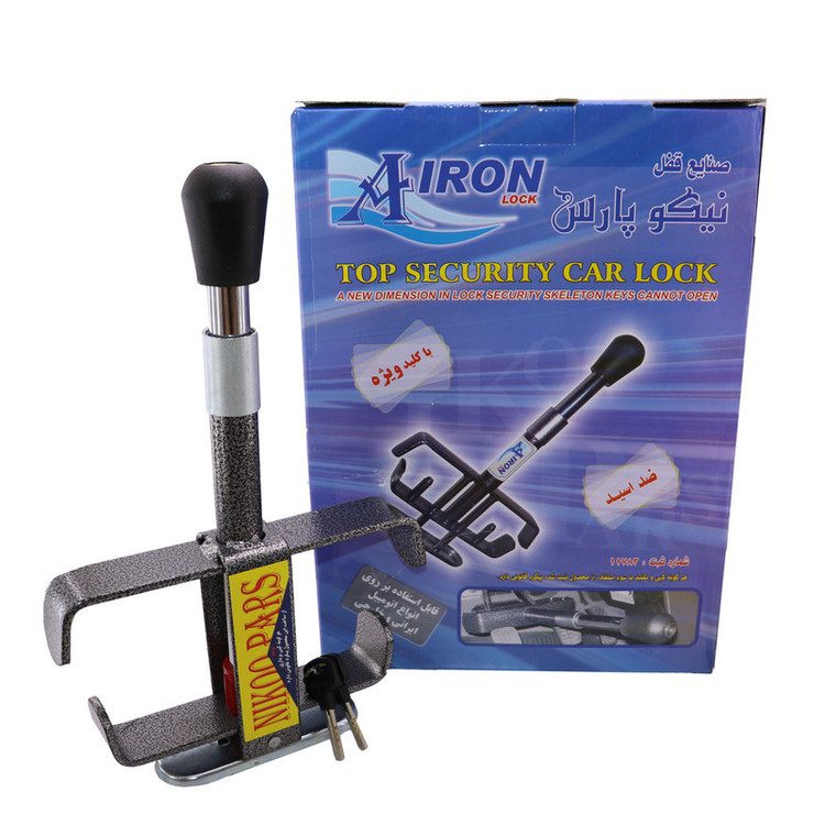 قفل فولادی نیکو پارس همراه دو عدد کلید سولکسی مناسب برای همه خودرو های ایرانی و اکسر ماشین های خارجی