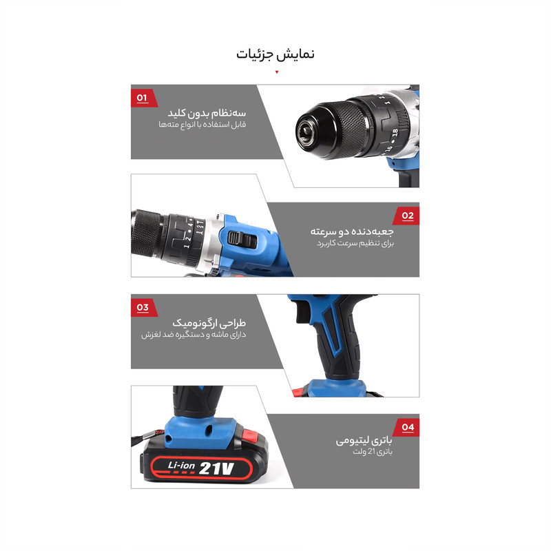 دریل چکشی ادون مدل 21 ولت