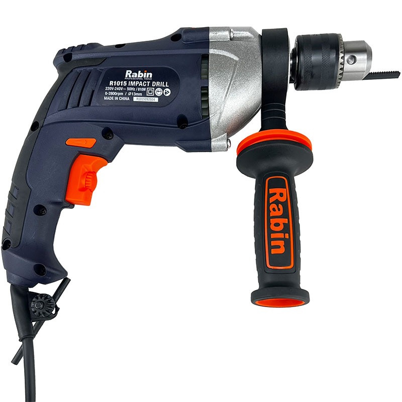 دستگاه فوق یکی از محصولات شرکت رابین بوده که علی رغم کیفیت بالای خود ازقیمت مناسبی برخوردار است.اگر قصد تهیهی یک دریل چکشی مناسب با قدرتی قابل قبول دارید، میتوانید از دستگاه فوق استفاده کنید. این دریل از توانی برابر 810 وات برخوردار است و از قابلیت کنترل سرعت گردش سود میبرد. میزان سرعت گردش این دستگاه توسط کلیدی چرخشی که روی شستی قرار دارد تنظیم میشود. بازهی سرعت چرخش این دستگاه 2800-0 دور بر دقیقه است. از دیگر مزایای این دستگاه میتوان به قابلیت چرخش ساعتگرد و پادساعتگرد آن اشاره کرد.این دستگاه دارای بدنه نیمه فلزی بوده و سه نظام این دریل چکشی از نوع 13 میلیمتری آچارخور بوده که حداکثر قطر سوراخکاری آن در چوب، فلز و مصالح به ترتیب برابر 30، 13 و 16 میلیمتر است. با کمک این دستگاه میتوانید با دقت و تسلط بیشتری به کار خود بپردازید که این ویژگی به دلیل وجود دستهی کمکی و قفل سوییچ این دریل حاصل شده است. این دسته قابل تنظیم بوده و از قابلیت چرخش 360 درجه سود میبرد. دستگاه فوق با نام (R1015 ) شناخته میشود و یکی از تولیدات شرکت «رابین» (RABIN) است.