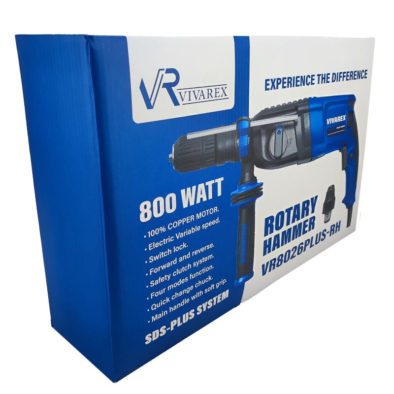 دریل بتن کن ویوارکس مدل VR8026-RH با توان 800 وات و دور موتور 1300 دور دردقیقه و نرخ ضربه نزدیک به 4000 ضربه بر دقیقه در حالت آزاد ابزار مناسبی جهت استفاده در مشاغل گوناگون است . این بتن کن دارای 3 حالت کاری دریل، تخریب و دریل چکشی می باشد و در مشاغل ساختمانی، عمرانی، صنعتی بسیار کاربرد دارد. بتن کن ویوارکس مدل VR8026-RH یک ابزار برقی بسیار پر طرفدار است که دارای قابلیت سوراخ کاری تا 26 میلیمتر است و همچنین دارای دسته جانبی ضد ضربه با قابلیت چرخشی 360 درجه می باشد.