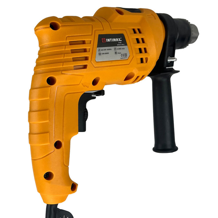 دریل فوق از شرکت اینتیمکس نیروی خود را از طریق برق شهری تامین میکند. بیشینه سرعت دوران این دریل 3000 دور بر دقیقه است. این دریل توانایی چرخش در دو جهت را دارد. با استفاده از این دریل قادر خواهید بود سوراخهایی حداکثر با قطر 13 میلیمتر در فلز و 13 میلیمتر در سیمان و تا 35 میلیمتر در چوب ایجاد کنید. این دریل با داشتن قابلیت چکشی و توان 1200 الی 2000 وات دریلی مناسب برای مصارف خانگی و تجاری است. این دریل مجهز به دسته جانبی دورانی و نیز شاخص عمق سنج نیز است. نحوه استفاده از قابلیت چکشی روی این دریل طوری طراحی شده که بتوان با کمترین نیرو، از حال معمولی به حالت چکشی تغییر وضعیت داد. این دریل از کیفیت بسیار مطلوبی برخوردار می باشد.