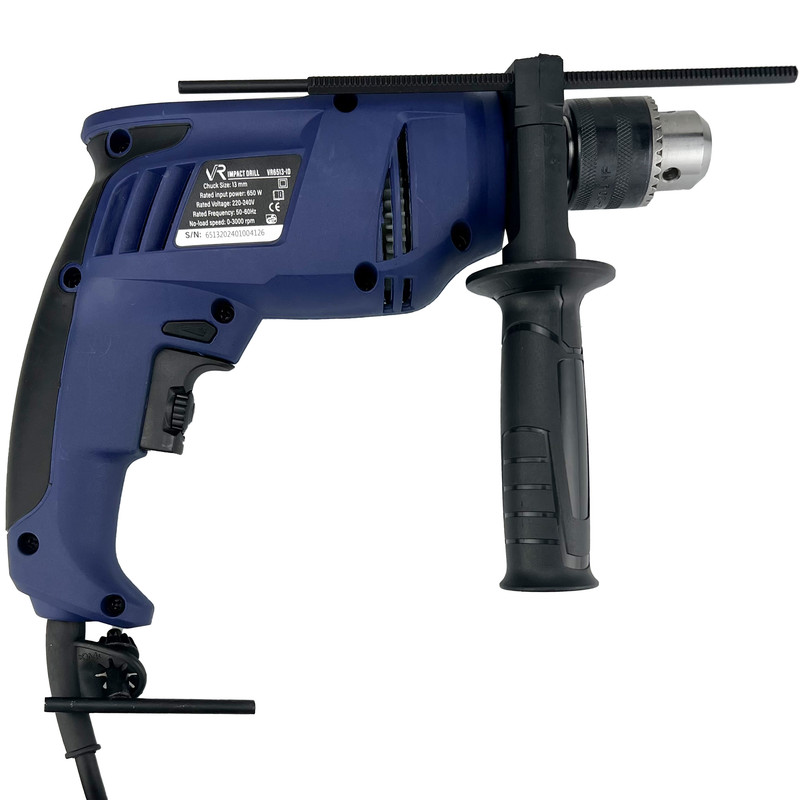 ویوارکس برندی پر آوازه در بین ابزارالات برقی و شارژی دریل چکشی فول آپشن مدل VR6513-ID را معرفی کرده. با داشتن یک موتور قدرتمند 650 واتی قادر است تا به حداکثر سرعت گردش آزادی برابر با 3000 دور بر دقیقه دست پیدا کند.سیم پیچ موتور تماما از مس درجه یک و دیمر تعبیه شده برای این محصول به کاربران این امکان را میدهد تا با توجه به نیاز خود سرعت این دریل را تنظیم نمایند. همچنین کلید تغییر جهت چرخش چپگرد-راستگرد تعبیه شده برای این محصول، این دریل را به ابزاری چند منظوره (استفاده برای پیچ بستن) تبدیل مینماید. در هر زمان که کاربران نیاز به استفاده از این دریل برای تخریب بتن و یا حفاری در آن را داشته باشند، میتوانند براحتی(توسط کلید حالت چکشی) حالت کارکرد دریل را با یک کلید تغییر دهند. در طراحی و ساخت بدنه دستگاه با بهره گیری از متریال اولیه با کیفیت و بهره گیری از ارگونومی بالا، کاربران قادر هستند تا بدون هیچگونه احساس خستگی، طی ساعات طولانی به کار بپردازند. سه نظام این محصول از نوع 13 میلیمتری فلزی آچاری بوده که تعویض مته را بیش از پیش برای کاربران آسوده کرده و بین تمامی هم رده های خود بهترین گزینه برای خرید در سایت دیجی کالا میباشد.