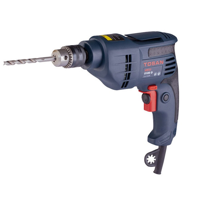 این دستگاه بهطور کامل مشخصات یک دریل معمولی را دارا است و شباهت بسیار زیادی به مدل 0100Da دارد. این دریل با طراحی ارگونومیک تولیدشده و وزن مناسب دارد. قابلیت تنظیم سرعت گردش موتور، برای این محصول امکانپذیر است. موتوری قدرتمند در ساخت این دستگاه بهکاررفته است. دریل برقی مدل 0100D ازجمله دریلهای برقی ساختهشده توسط شرکت «توسن» (Tosan) محسوب میشود. این شرکت مدل 0100D را مشابه با یکی دیگر از دریلهای برقی خود، یعنی مدل 0100Da تولید کرده است. تنها تفاوت این دو دریل در نوع نظام دستگاه بوده که مدل 0100D یک سهنظام معمولی دارد. این محصول با یک موتور زغالی که 400 وات قدرت دارد، کار میکند. حداکثر قطر سوراخی که میتوانید به کمک این دستگاه در قطعات چوبی یا فلزی ایجاد کنید، به ترتیب 20 و 10 میلیمتر است. از این مدل در مصارف خانگی و تجاری استفاده فراوانی میشود. دریلهای برقی گوناگونی توسط شرکتهای داخلی و خارجی تولید و عرضه میشود. اما شرکت توسن با تولید چند مدل دریل برقی معمولی، امکان تهیهِی این دستگاه را با پرداخت هزینهای مناسب فراهم کرده است. شاید کیفیت ساخت محصولات این شرکت در حد شرکتهای نظیر دیوالت یا بوش نباشد، اما قیمت در نظر گرفتهشده برای تهیهی دریلهایی که توسط توسن تولید میشود، بسیار مناسب است. مدل 0100D یک دریل معمولی با موتور 400 وات است. این دریل به یک سهنظام خودکار مجهز شده که برای تعویض مته، نیازی به استفاده از ابزار ندارد.