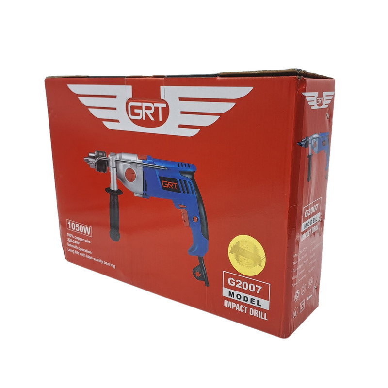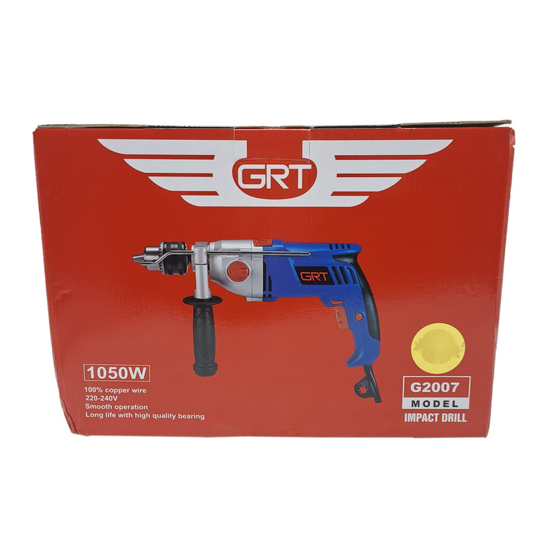 دریل جی آر تی یکی از انواع ابزار های برقی دریل چکشی هستند که از آنها برای سوراخ کاری استفاده می شود. مکانیزم کار در این ابزار به گونه ای است که از طریق چرخش مته در سرعت بالا می توان سوراخ کاری را انجام داد. یکی از انواع دریل که علاوه بر چرخش ،حالت ضربه هم دارد دریل چکشی جی آر تی نامیده می شود. در این دریل ها علاوه بر چرخش می توان از حالت چکشی یا ضربه هم استفاده کرد. دریل چکشی در اصل یکی از انواع دریل ها هستند که کاربرد وسیع تری نسبت به دریل های معمولی دارد و از آنها می توان در سوراخ کاری سطوح سخت و بتنی و گچی و سنگ و سرامیک و ... استفاده کرد.