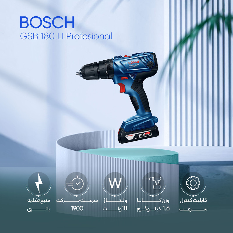 دریل پیچ گوشتی شارژی چکشی بوش مدل GSB 180 LI Profesional