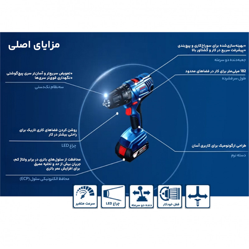 شاید بسیاری از مردم در دنیا کمپانی بوش را برترین برند در زمینه تولید لوازم خانگی و ابزار آلات صنعتی بدانند . ولی واقعیت این است که این شرکت در بیشتر زمینه های تولیدات صنایع پزشکی نفت و گاز و بسیاری از صنایع با نام های تجاری دیگر جز برترین ها بوده است . یکی دیگر از زمینه های طراحی و تولیدی این شرکت در زمینه ابزارهای شارژی به خصوص دریل پیچ گوشتی است که می توان گفت در این راه هم بوش بی رقیب بوده است. شرکت بوش با تولید دریل پیچ گوشتی شارژی چکشی مدل GSB 180 Li در اواسط سال 2018 میلادی قدرت خود را بر رخ رقیبان بزرگ کشید . این دستگاه جایگزین مناسبی برای پیچگوشتیهای معمولی است و موجب بالارفتن سرعت کاربر در حین کار میشود و باید برای این منظور مجموعهای کامل از سریهای پیچگوشتی تهیه کنید. این محصول با توجه به سرعت چرخش بالایی که دارد، در حالت دریل نیز عملکرد خوبی خواهد داشت. سرعت این محصول قابلکنترل است و کاربر میتواند آن را در دو بازهی 0 تا 500 و 0 تا 1900 دور بر دقیقه تنظیم کند. گشتاور این دریل پیچگوشتی نیز مانند سرعت آن قابلتنظیم است. میزان گشتاور این دستگاه در کمترین حالت 21 نیوتنمتر و در بالاترین حالت 54 نیوتنمتر است. این محصول دارای 2 باتری شارژی لیتیوم یونی با طول عمر بسیار بالا بوده که ولتاژی 18 ولتی و ظرفیتی 2000 میلیآمپرساعتی دارند. وجود سهنظام اتومات 13 میلی متری بسیار با کیفیت از دیگر مزایای این دستگاه است که موجب افزایش سرعت تعویض مته و سری پیچگوشتی میشود. این محصول را شرکت بوش تحت عنوان مدل «GSB 180-Li» به بازار عرضه میکند. تمام ویژگی های مثبت و کیفیت این دستگاه باعث شده که این دستگاه در نوع خود در دنیا بی رقیب باشد.