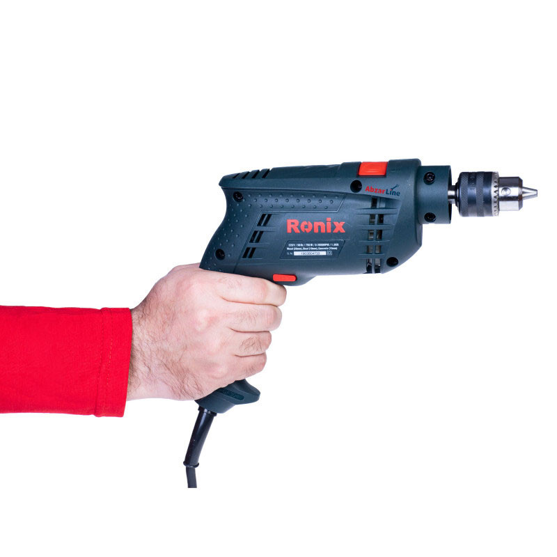 دریل چکشی 750 وات رونیکس مدل 2120، با ساز و کاری مقاوم، برای سوراخکاری و نصب قطعات در صنایع گوناگون فلز، چوب و بتن طراحی شده است. این دستگاه دارای ظرفیت سوراخکاری 20 میلی متر در چوب، 10 میلی متر در فلز و 10 میلی متر در مصالح است. ظرفیت سه نظام این دریل، 10میلیمتر است. این سهنظام آچارخور، به سبب چکشی بودن و نوع کاربری، از مقاومت بالایی برخوردار است. آچار سه نظام، جزو اقلام همراه ابزار، در بسته بندی دستگاه موجود میباشد و بهوسیلهی یک غلاف پلاستیکی به کابل دریل نصب شده است که این نیز از ویژگیهای کاربردی دستگاه به حساب میآید.در قسمت بالای بدنهی دریل، یک شاسی دو وضعیتهی روان برای تغییر حالت دریل از حالت چکشی به دوار و برعکس درنظر گرفته شده که کارایی دستگاه را تا میزان خوبی بالا میبرد. این دریل دارای کلید چپگرد-راستگرد و دسترسی راحت برای تغییر جهت میباشد.این دریل 750 وات، دارای کابل سهمتری با مقاومت عالی است و محل اتصال کابل با محافظ کروی و دوار، علاوه بر سهولت در استفاده و قدرت مانور بیشتر، موجب افزایش طول عمر دستگاه نیز میگردد.