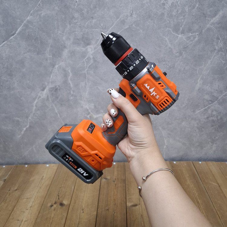 دریل چکشی شارژی براشلس سه نظام 10 میلی متری 21 ولت مکث اچ ام تی مدل 21V مجوعه 5 عددی