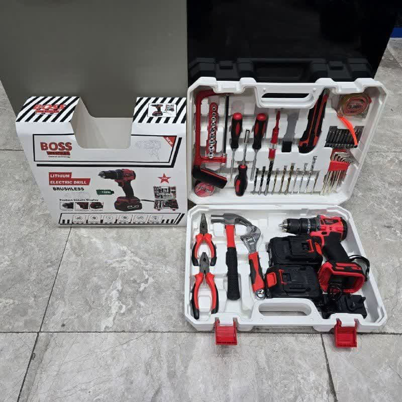 مجموعه 100 عددی ابزار باس یکی دیگر از محصولات شرکت معتبر BOSS می باشد این مجموعه زیبا و کاربردی که دارای ابزاری است که در تمامی کارهای صنعتی و خانگی قابل استفاده می باشد این مجموعه ابزار که بصورت اصلی و اورجینال توسط ایران باس توزیع میگردد دارای مشخصات ذیل می باشد که عبارتند از : دریل پر قدرت چکشی با گیربکس دو دور و دو عدد باتری پرقدرت و دارای دیمر و چپگرد و راستگرد می باشدو همچنین دارای کلیه ابزارهای مصرفی شامل؛ آچار فرانسه سایز۸، انبردست، دمباریک، چکش، بکس تک سایز ۴ تا ۱۳، متر ۳ متری، پیچ گوشتی دوسو و چهارسو سایز بزرگ، پیچ گوشتی نوک خور، مته آهن سایز ۵ و ۶ و ۸، مته دیوار سایز ۵ ،۶ و ۸، و مته دیوار تبدیل نوک پیچ گوشتی به بکس چسب برق، کاتر، فازمتر دیجیتال، آچار سه نظام، ۵ عدد تیغ کاتر، دو سایز پیچ ، کمان اره چوب و فلز و ... که تمامی این ابزار در یک کیف BMC حرفه ای قرار گرفته است و لطفا همیشه به اصل بودن کالا توجه فرمایید.