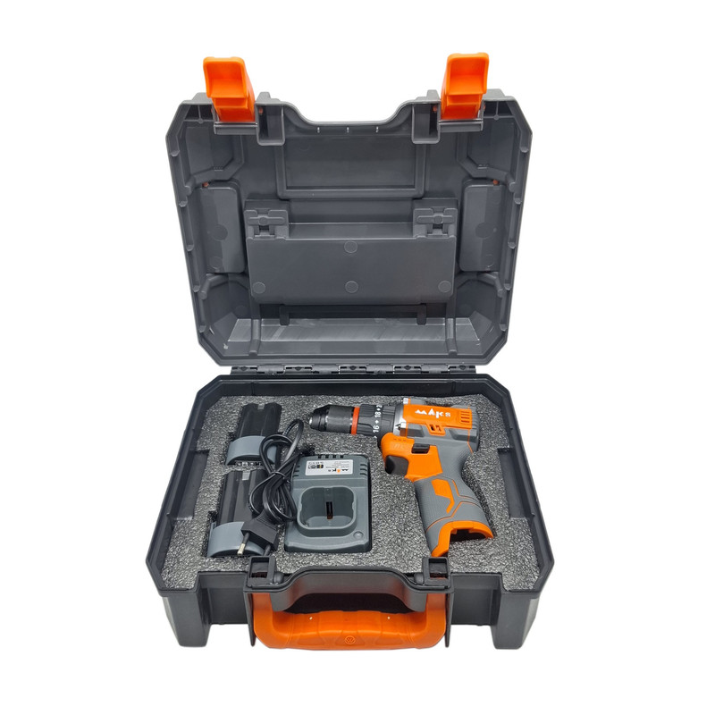 دریل چکشی شارژی براشلس سه نظام 10 میلی متری 16/8 ولت مکث اچ ام تی مدل DB2 مجوعه 5 عددی