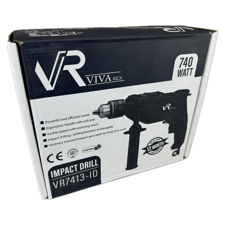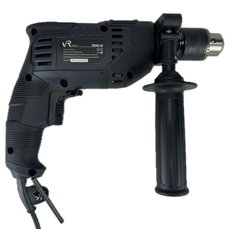 ویوارکس برندی پر آوازه در بین ابزارالات برقی و شارژی دریل چکشی فول آپشن مدل VR 7413 - ID را معرفی کرده. با داشتن یک موتور قدرتمند 740 واتی قادر است تا به حداکثر سرعت گردش آزادی برابر با 3000 دور بر دقیقه دست پیدا کند.سیم پیچ موتور تماما از مس درجه یک و دیمر تعبیه شده برای این محصول به کاربران این امکان را میدهد تا با توجه به نیاز خود سرعت این دریل را تنظیم نمایند. همچنین کلید تغییر جهت چرخش چپگرد-راستگرد تعبیه شده برای این محصول، این دریل را به ابزاری چند منظوره (استفاده برای پیچ بستن) تبدیل مینماید. در هر زمان که کاربران نیاز به استفاده از این دریل برای تخریب بتن و یا حفاری در آن را داشته باشند، میتوانند براحتی(توسط کلید حالت چکشی) حالت کارکرد دریل را با یک کلید تغییر دهند. در طراحی و ساخت بدنه دستگاه با بهره گیری از متریال اولیه با کیفیت و بهره گیری از ارگونومی بالا، کاربران قادر هستند تا بدون هیچگونه احساس خستگی، طی ساعات طولانی به کار بپردازند. سه نظام این محصول از نوع 13 میلیمتری فلزی آچاری بوده که تعویض مته را بیش از پیش برای کاربران آسوده کرده و بین تمامی هم رده های خود بهترین گزینه برای خرید در سایت دیجی کالا میباشد.