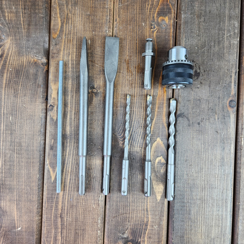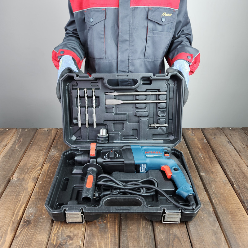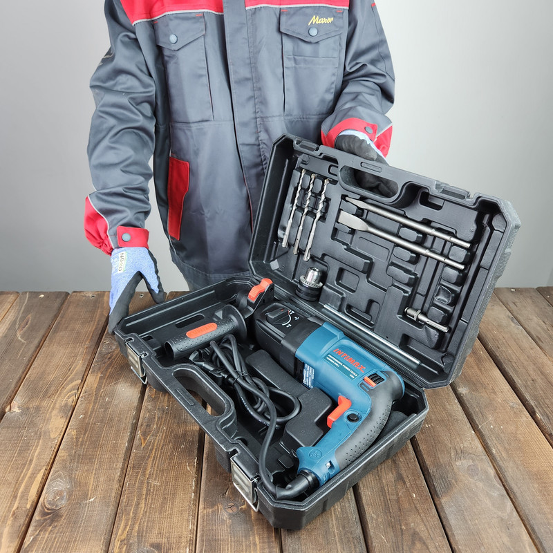 این دستگاه دارای موتوری با توان 3000 وات است که مجهز به موتور پرقدرت با قابلیت تنظیم سه حالت عملکرد مجزا (سوراخکاری، سوراخکاری چکشی و تخریب) میباشد. همچنین، بدنه آن طراحی شده است با رعایت استانداردهای روز و از مواد مقاوم و باکیفیت برای ضمانت عمر طولانی دستگاه و محافظت در برابر صدمات فیزیکی. سیلندری با ظرفیت بالا برای ایجاد قویترین ضربهها با توان بالا جهت اثربخشی بیشتر دستگاه و دستهگردان 360 درجه برای اعمال کنترل بیشتر روی حرکت دستگاه و استفاده آسان برای کاربر نیز در این دستگاه وجود دارد. سیستم ابزارگیر چهارشیار SDS-PLUS ضدغبار با قابلیت تعویض آسان مته، کلید قفلکن سرعت در حالت روشن برای تنظیم دقیق سرعت و آسایش کاربر در زمان استفادههای طولانی مدت و سیستم پیشرفته کلاچ ایمنی جهت محافظت بیشتر از دست کاربر در هنگام استفاده روی سطوح بسیار متراکم نیز جزء ویژگیهای این دستگاه میباشند. در نهایت، دستگاه دارای یک عدد سه نظام 13 میلیمتر، رابط چهار شیار به سه نظام، دو عدد قلم نوک تیز و تخت و سه عدد مته است.