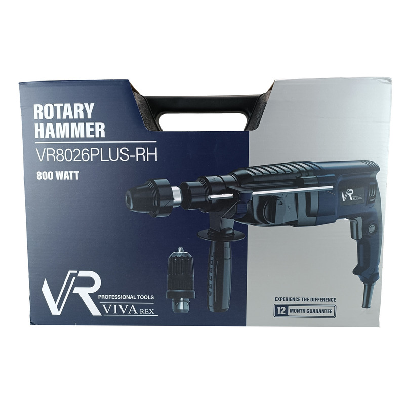 ویوارکس برندی معتبر در بین ابزارالات صنعتی بتن کن سه کاره مدل VR8026 PLUS-RH خود را معرفی کرد. با موتور فوقالعاده قدرتمند 800 واتی (صنعتی) خود و سیم پیچ تماما مس درجه یک به کاربرده شده قادر است، دور موتوری معادل 1300 دوردردقیقه و نرخ ضربه نزدیک به 4000 ضربه بر دقیقه در حالت آزاد را فراهم کند و بدون هیچ سختی به ایجاد حفره در سطوح فولادی، چوبی و بتنی به ترتیب در اعماق 13، 30 و 26 سانتی می باشد.از مشخصات بارز این محصول وجود 2 عدد سه نظام (26 میلیمتر اتوماتیک،26 میلیمتری چهار شیار) با قابلیت تعویض سریع اشاره کرد. این ابزار فوق قدرتمند با دارا بودن بدنه ارگونومیک ضد تعرق برای کنترل بهتر، وزن فوق سبک (تنها 2/8 کیلوگرم) برای قدرت مانور بیشتر و به همراه داشتن کیف قابل حمل و متعلقات جانبی شامل مبدل سه نظام، 3 عدد مته با شمارههای 6 ،8 و 10، یک عدد قلم نوک تیز و یک عدد قلم نوک تخت، خط کش عمق سنج و دسته کمکی 360 درجه؛ یک دریل بتنکن حرفهای به شمار میآید که شمارا از قدرت خود ناامید نخواهد ساخت.