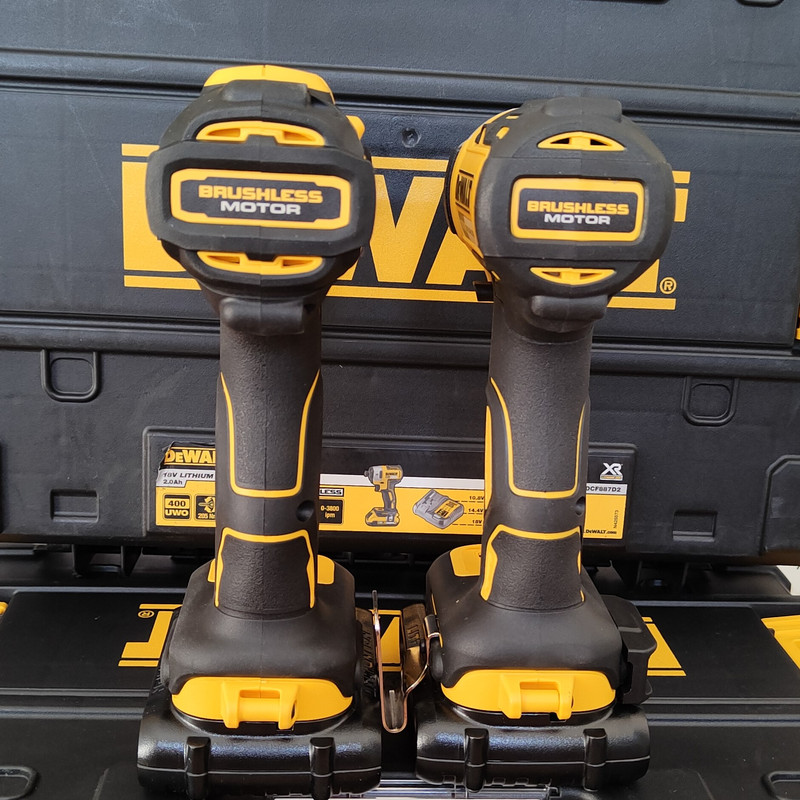 ست دوتایی دریل پیچ گوشتی شارژی چکشی دیوالت مدل DCD709 با موتور براشلس از سری های فوق حرفه ای دیوالت و با کاربری صنعتی می باشد. این ست اصلی میباشد و ساخت چین تحت لیسانس المان و تولید سال 2021 میباشد. این سری به همراهی 2 باطری قدرتمند 18ولت 1.5 آمپر تمامی امور حرفه ای و صنعتی را بصورت حرفه ای انجام میدهند. موتور هر دو دستگاه براشلس میباشد و از آخرین تکنولوژی دیوالت بهره میبرند. این دریل شارژی چکشی حرفه ای دارای موتور براشلس بسیار قدرتمند میباشد .که قابل رقابت با دریل های سیمی است. برای مقایسه گشتاور دریل های شارژی عادی بازار در محدوده 20 نیوتون متر است در حالی که این دریل 65 نیوتن بر متر نیرو در اختیار کاربر قرار میدهد. گیربکس و شفت و سه نظام و تمام اجزای متحرک داخلی این دستگاه از فلز سخت است. این مدل به یک گیربکس 2 سرعته مجهز است که در سرعت بالا چرخشی معادل 1650 دور در دقیقه داراست. کلاچ این دستگاه چندین حالته و بسیار دقیق الکترونیکی است. موتور این دریل با کارکرد زیاد دچار فشار و افت نمیشود ضمن اینکه عمر مفید بسیار بالایی داراست. پیچ بند این ست مدل DCF887 است که جزو قویترین مدل های پیچ گوشتی یا پیچ بند دیوالت است. این پیچ بند شارژی با موتور براشلس و توان بسیار بالای 205 نیوتن بر متر توانایی بسیاری در باز و بست همه ی انواع پیچ از کوچک تا بسیار بزرگ را داراست. همچنین با قابلیت ایمپکت این مدل که میتواند تا 3800 ضربه در دقیقه وارد کند باز کردن پیچ های بسیار بزرگ یا سفت و یا زنگ زده آسان خواهد بود. این دستگاه قابل استفاده به عنوان بوکس شارژی نیز هست و کاربردهای گسترده ای داراست. هردو دستگاه اصلی بوده و دارای چراغ قوه حرفه ای هستند .