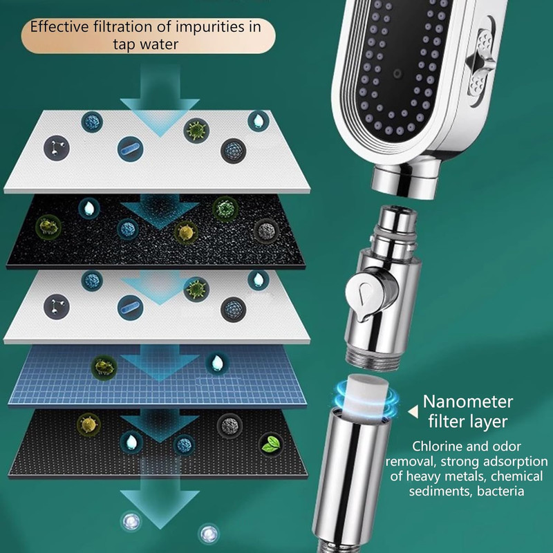 سردوش سیار , عملگر دستی , فیلتراسیون آب , مه پاش , دارای دکمه قطع و وصل جریان آب , امکان تغییر حالت پاشش آب سردوش