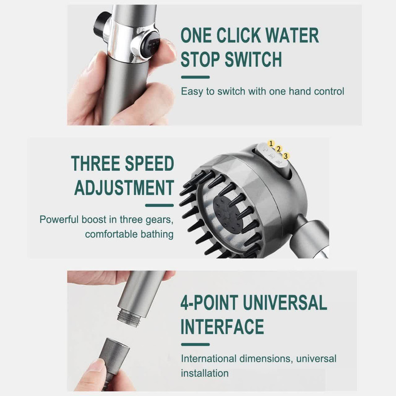 دارای چند حالت پخش آب، نصب راحت، امکان چرخش سری، دارای لیف در پشت آن، دارای فیلتر.