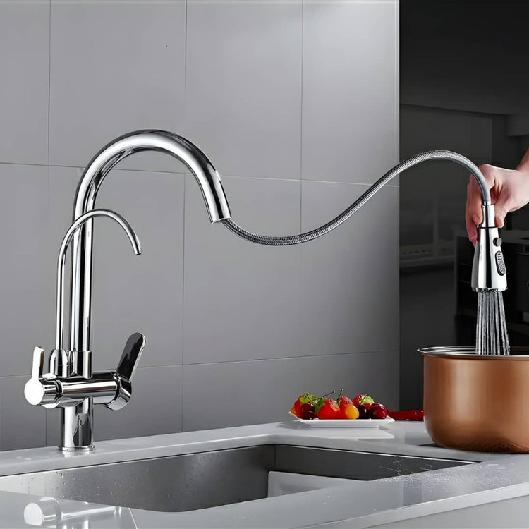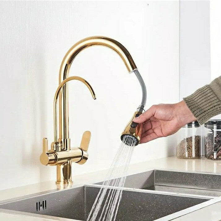 اهرمی , دارای 2 دسته , دارای شیلنگ , سردوش سیار , علمک چرخان 360 درجه , ضد زنگ , بدون نشتی , چرخش ۱۸۰ درجه , مقاومت بالا در برابر سایش , امکان تغییر حالت پاشش آب سردوش