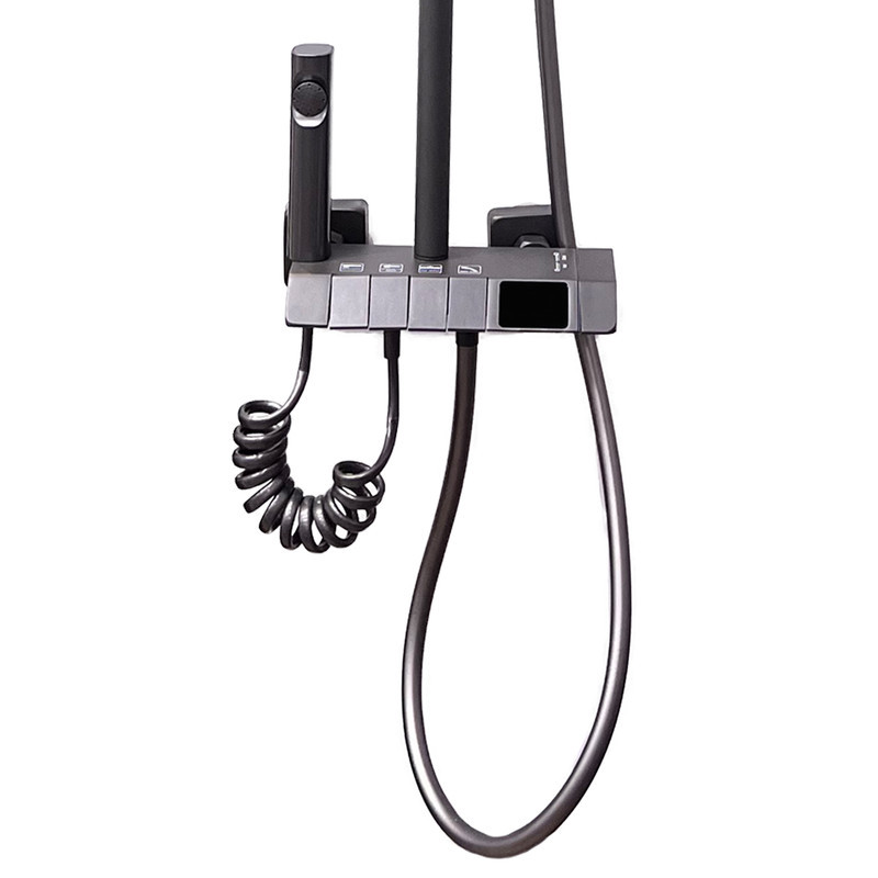 دوش پیانویی در واقع طراحی و کلیت دوش پیانویی بر اساس ساز پیانو شکل گرفته است به گونه ای که یکسری از کلیدها در بخش متوسطه این دوش نصب شده است که متناسب با فشار و دمای آب این محصول ارتباط دارد. دوش حمام پیانویی دیجیتال هایشنگ دای مشخصات زیر میباشد : رنگبندی دودی جنس برنچی با لوله استیل دارای نمایشگر دمای آب و تایمر دارای 4 حالت مختلف پاشش آب دارای 4 دکمه پیانویی برای کنترل راحت آب فشار آب بسیار زیاد قابلیت تنظیم دمای آب به صورت اهرمی دارای گوشی با کیفیت با تنظیم چند حالته دارای شات آف با شلنگ فنری چرخش دوش 360 درجه طراحی مدرن وزن و کیفیت بالا